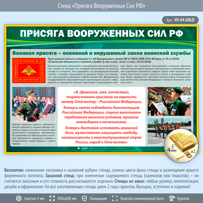 Стенд «Присяга Вооруженных Сил РФ» (VU-04-GOLD) в Ижевске купить
