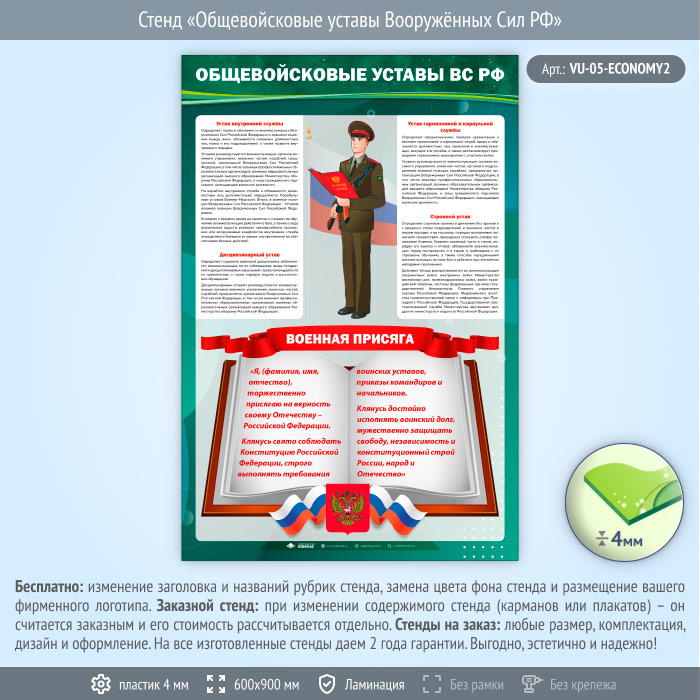 Стенд «Общевойсковые уставы Вооружённых Сил РФ» (VU-05-ECONOMY2) в Ижевске купить