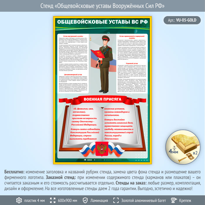 Стенд «Общевойсковые уставы Вооружённых Сил РФ» (VU-05-GOLD) в Ижевске купить