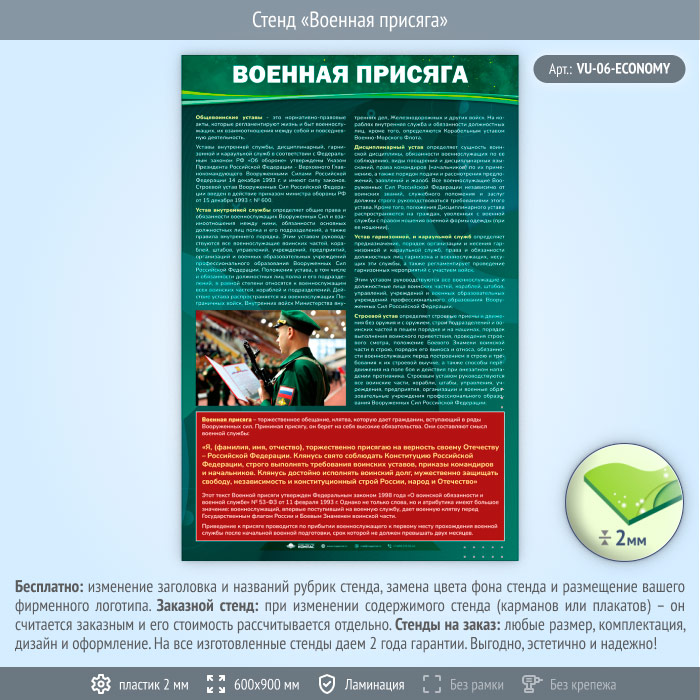 Стенд «Военная присяга» (VU-06-ECONOMY) в Ижевске купить