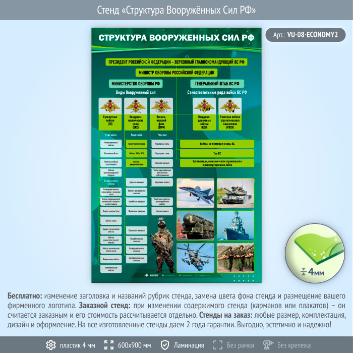 Стенд «Структура Вооружённых Сил РФ» (VU-08-ECONOMY2) в Ижевске купить