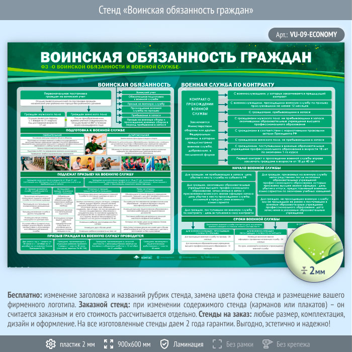 Стенд «Воинская обязанность граждан» (VU-09-ECONOMY) в Ижевске купить