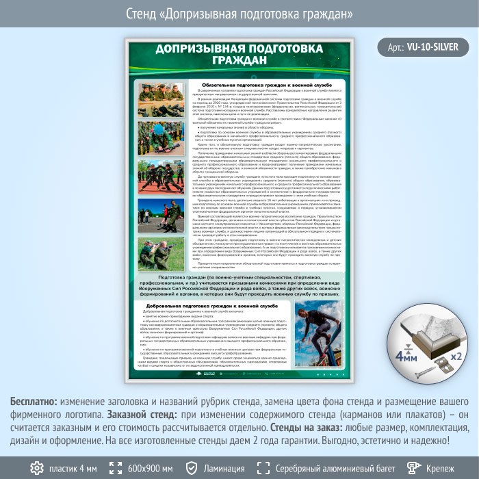 Стенд «Допризывная подготовка граждан» (VU-10-SILVER) в Ижевске купить