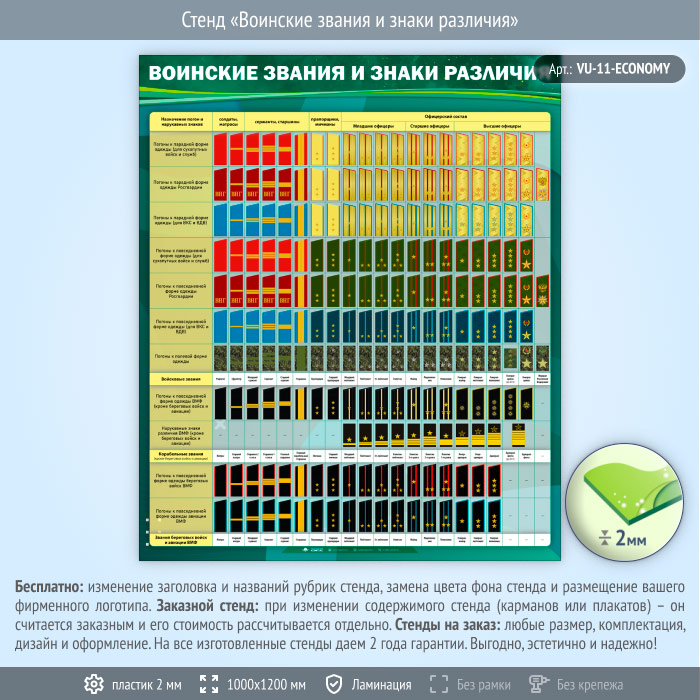 Стенд «Воинские звания и знаки различия» (VU-11-ECONOMY) в Ижевске купить
