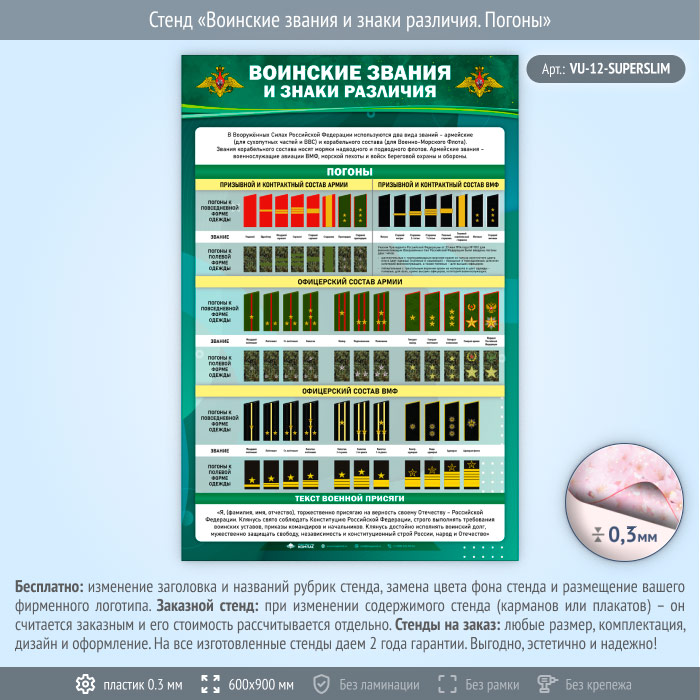 Стенд «Воинские звания и знаки различия. Погоны» (VU-12-SUPERSLIM) в Ижевске купить