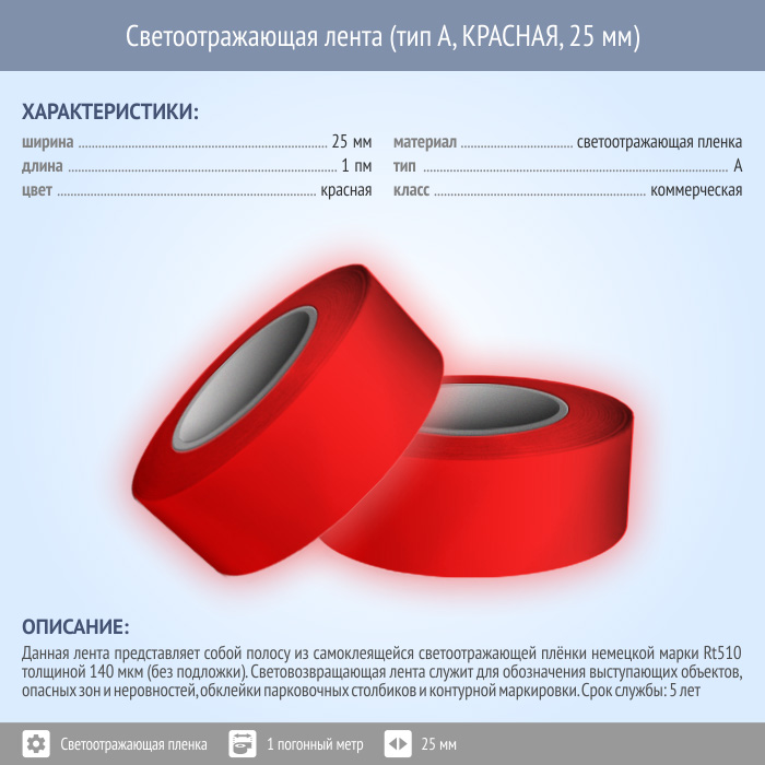 Светоотражающая однородная лента (тип А, КРАСНАЯ, 25 мм х 1 п.м.) в Ижевске купить