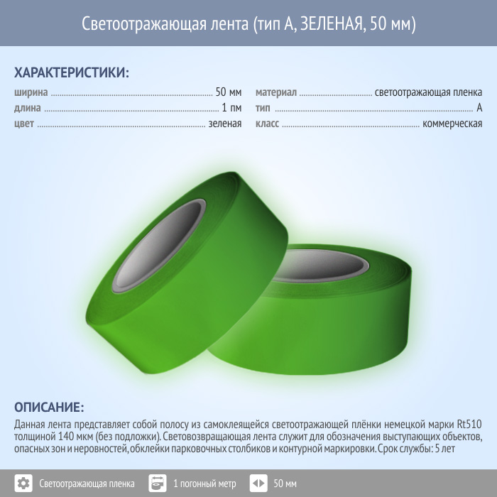 Светоотражающая однородная лента (тип А, ЗЕЛЕНАЯ, 50 мм х 1 п.м.) в Ижевске купить