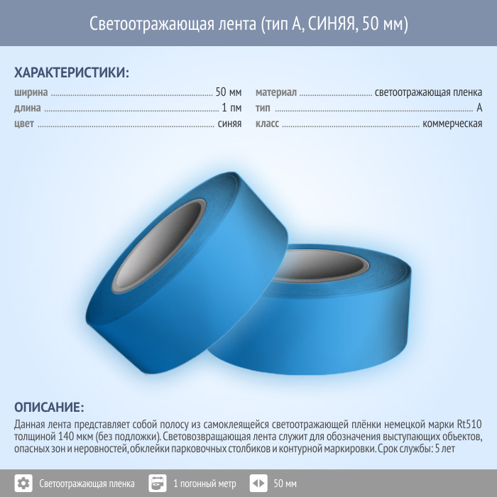 Светоотражающая однородная лента (тип А, СИНЯЯ, 50 мм х 1 п.м.) в Ижевске купить