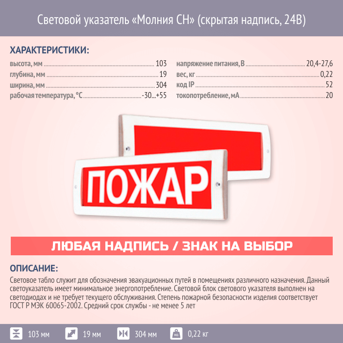 Световой указатель Молния СН (скрытая надпись, 24В) в Ижевске купить