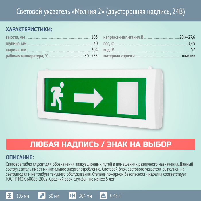 Световой указатель Молния 2 (двусторонняя надпись, 24В) в Ижевске купить