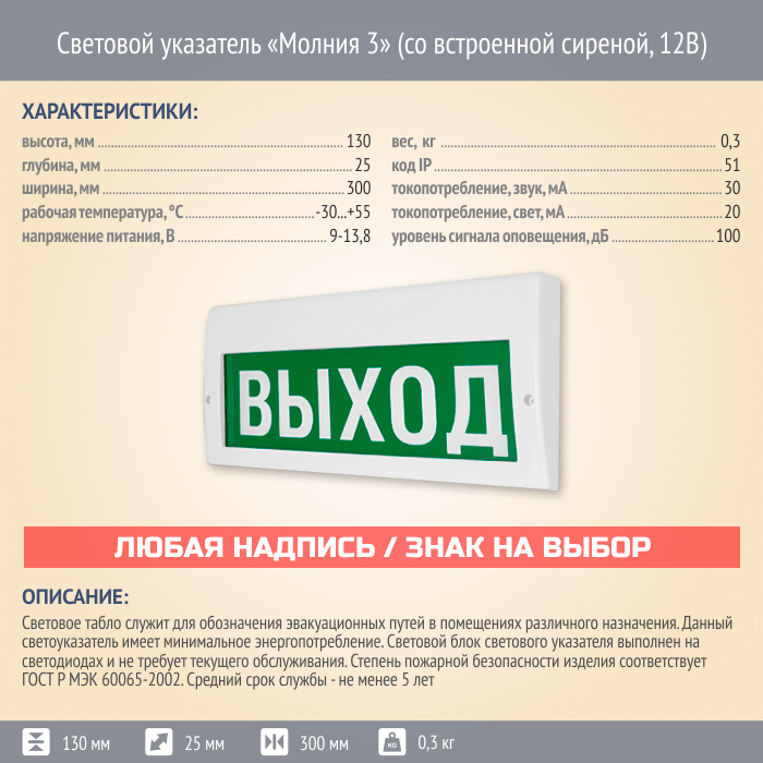 Световой указатель Молния 3 (со встроенной сиреной, 12В) в Ижевске купить