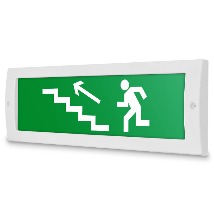 Световое табло «Направление к эвакуационному выходу по лестнице вверх (левосторонний)», Молния (12В) в Ижевске купить