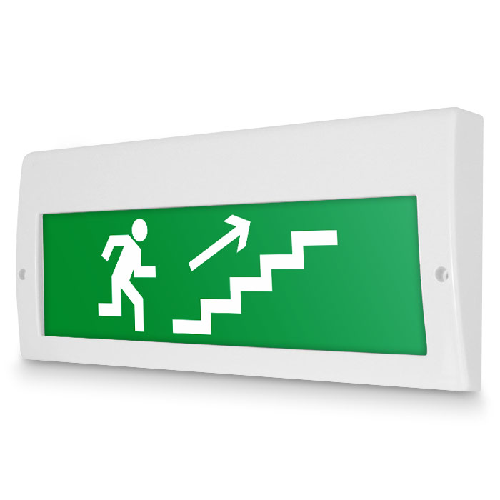 Световое табло «Направление к эвакуационному выходу по лестнице вверх (правосторонний)», Молния (220В РИП) в Ижевске купить