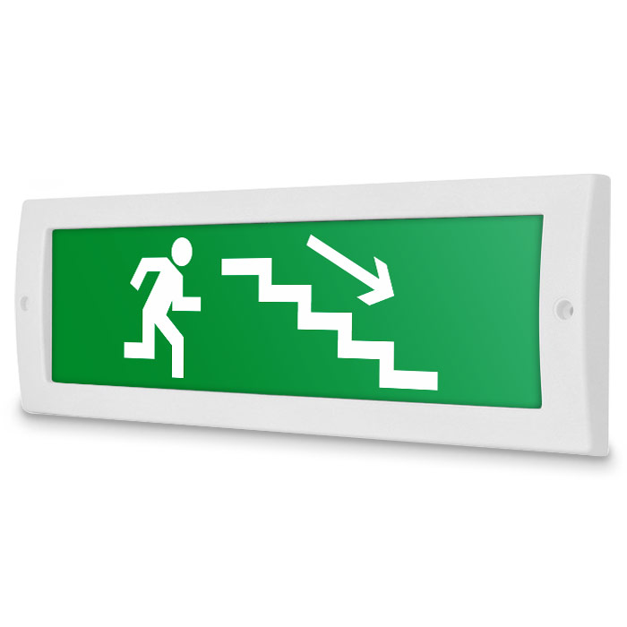 Световое табло «Направление к эвакуационному выходу по лестнице вниз (правосторонний)», Молния (12В) в Ижевске купить