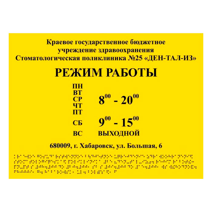 Тактильная вывеска с дублированием азбукой Брайля, ДС12 (полистирол 3 мм, 400х300 мм) в Ижевске купить