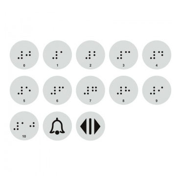 Тактильные наклейки для кнопок лифта с 0 по 10 этаж (набор), ДС95 (пленка, 20х20 мм, серебристый) в Ижевске купить