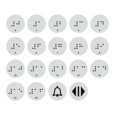 Тактильные наклейки для кнопок лифта с 0 по 16 этаж (набор) , ДС96 (пленка, 20х20 мм, серебристый) в Ижевске купить