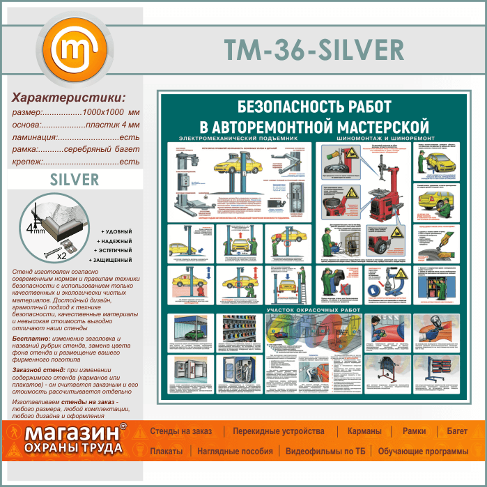 Стенд «Безопасность работ в авторемонтной мастерской» (TM-36-SILVER) в Ижевске купить