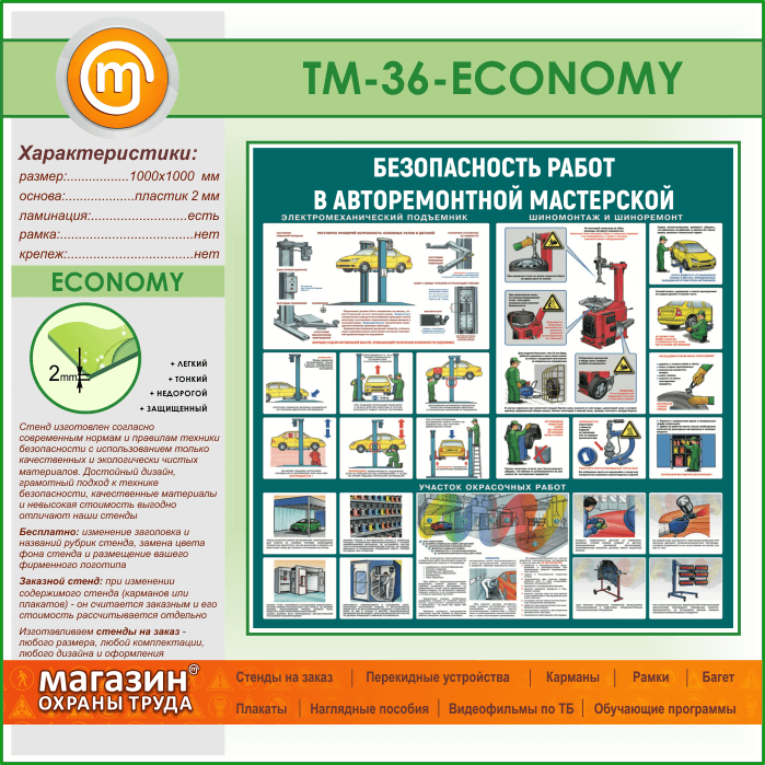 Стенд «Безопасность работ в авторемонтной мастерской» (TM-36-ECONOMY) в Ижевске купить