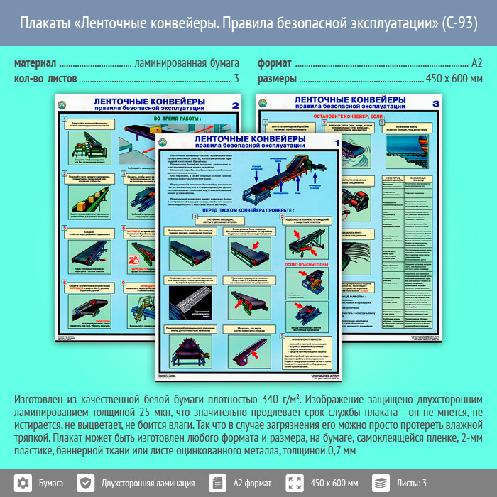 Плакаты «Ленточные конвейеры. Правила безопасной эксплуатации» (С-93, ламинированная бумага, А2, 3 листа) в Ижевске купить