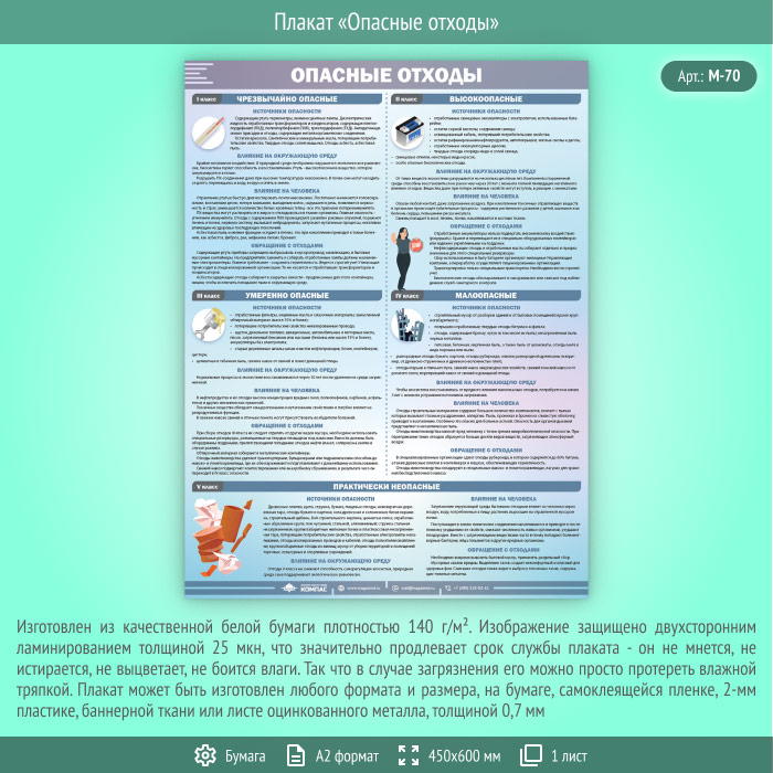 Плакат «Опасные отходы» (М-70, ламинированная бумага, А2, 1 лист) в Ижевске купить