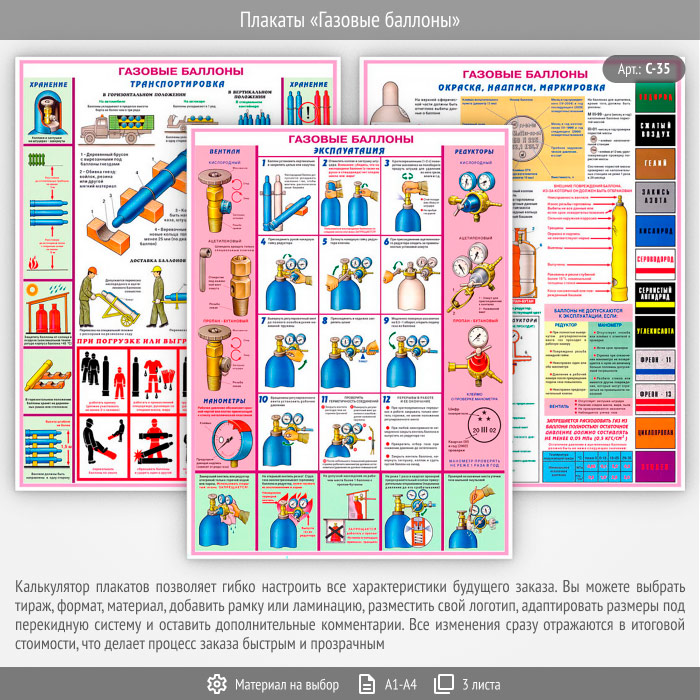 Плакаты «Газовые баллоны» (С-35, 3 листа) в Ижевске купить