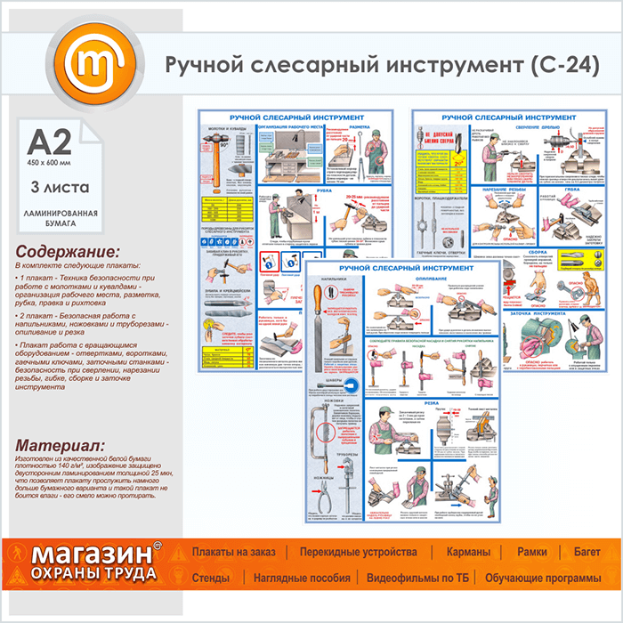 Плакаты «Ручной слесарный инструмент» (С-24, ламинированная бумага, А2, 3 листа) в Ижевске купить