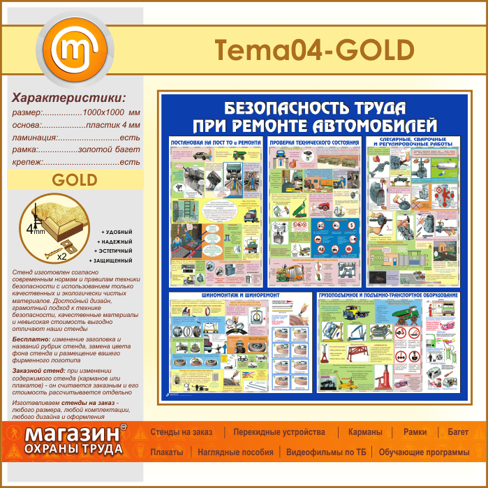 Стенд «Безопасность труда при ремонте автомобилей» (TM-04-GOLD) в Ижевске купить