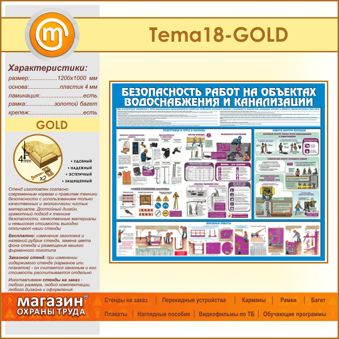 Стенд «Безопасность работ на объектах водоснабжения и канализации» (TM-18-GOLD) в Ижевске купить