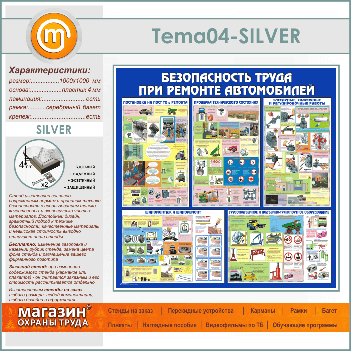 Стенд «Безопасность труда при ремонте автомобилей» (TM-04-SILVER) в Ижевске купить