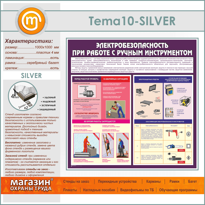 Стенд «Электробезопасность при работе с ручным инструментом» (TM-10-SILVER) в Ижевске купить