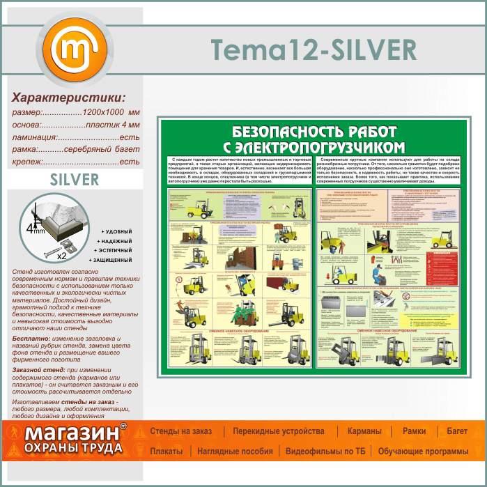 Стенд «Безопасность работ с электропогрузчиком» (TM-12-SILVER) в Ижевске купить