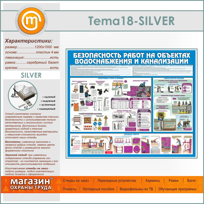 Стенд «Безопасность работ на объектах водоснабжения и канализации» (TM-18-SILVER) в Ижевске купить
