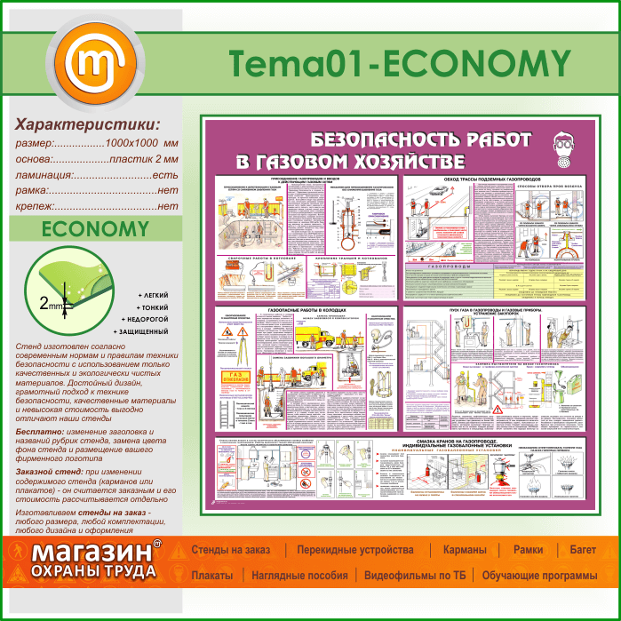 Стенд «Безопасность работ в газовом хозяйстве» (TM-01-ECONOMY) в Ижевске купить