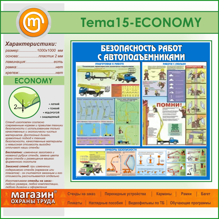 Стенд «Безопасность работ с автоподъемниками» (TM-15-ECONOMY) в Ижевске купить