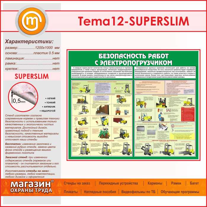 Стенд «Безопасность работ с электропогрузчиком» (TM-12-SUPERSLIM) в Ижевске купить