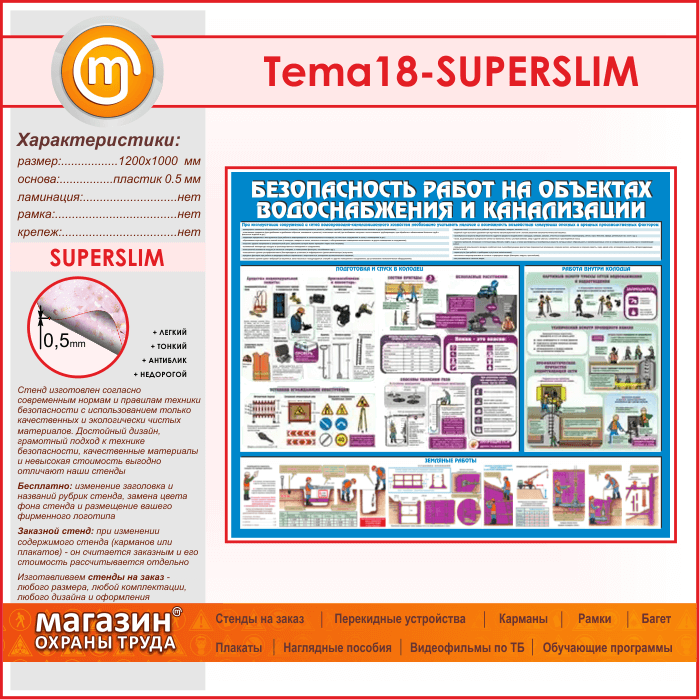 Стенд «Безопасность работ на объектах водоснабжения и канализации» (TM-18-SUPERSLIM) в Ижевске купить
