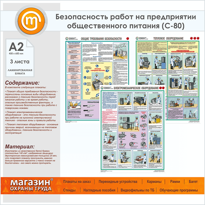 Плакат « Правила охраны труда на предприятии общественного питания» (С-80, ламинированная бумага, А2, 3 листа) в Ижевске купить