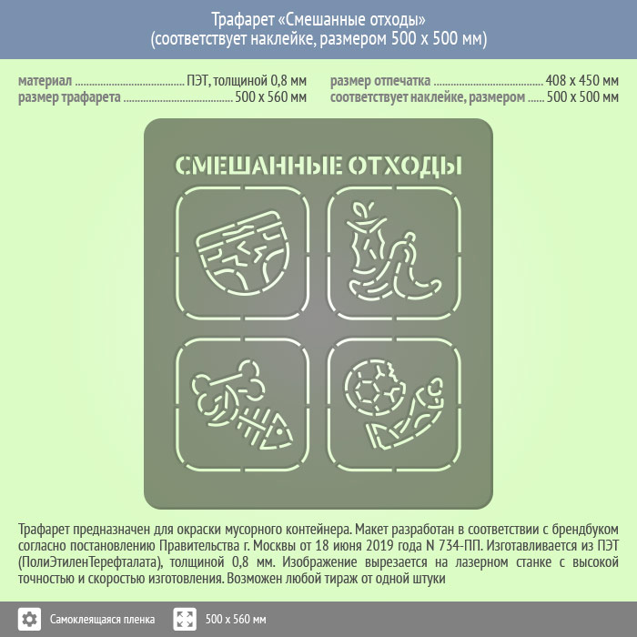Трафарет «Смешанные отходы» (соответствует наклейке, размером 500х500 мм) в Ижевске купить