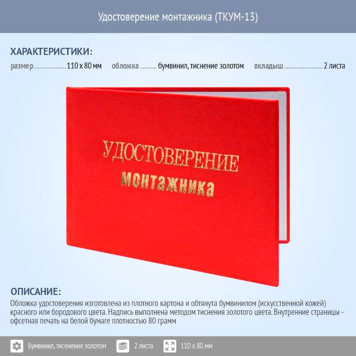 Бланк удостоверения монтажника (ТКУМ-13) в Ижевске купить