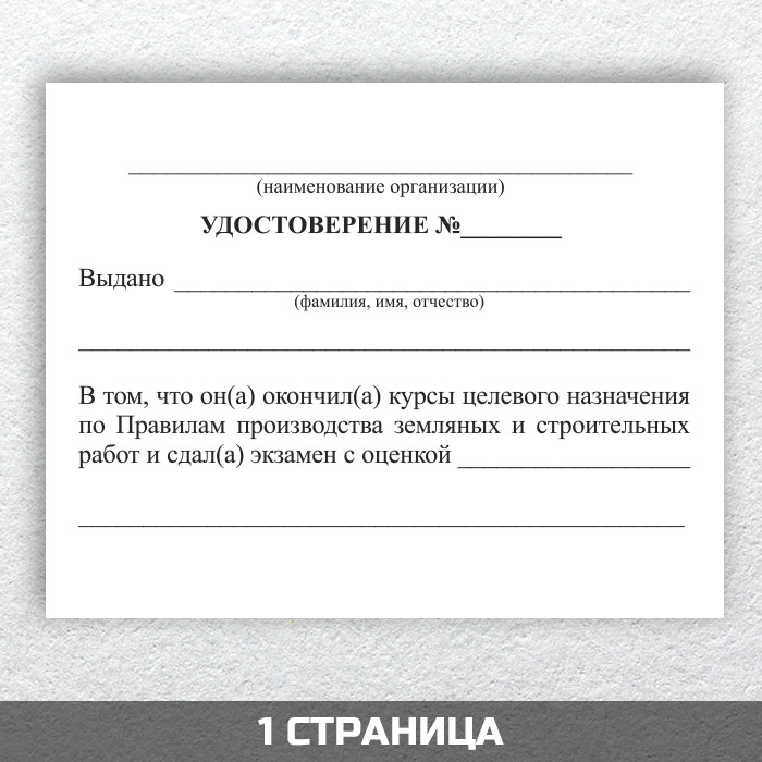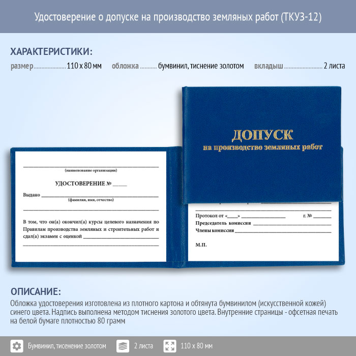Бланк удостоверения о допуске на производство земляных работ (ТКУЗ-12) в Ижевске купить