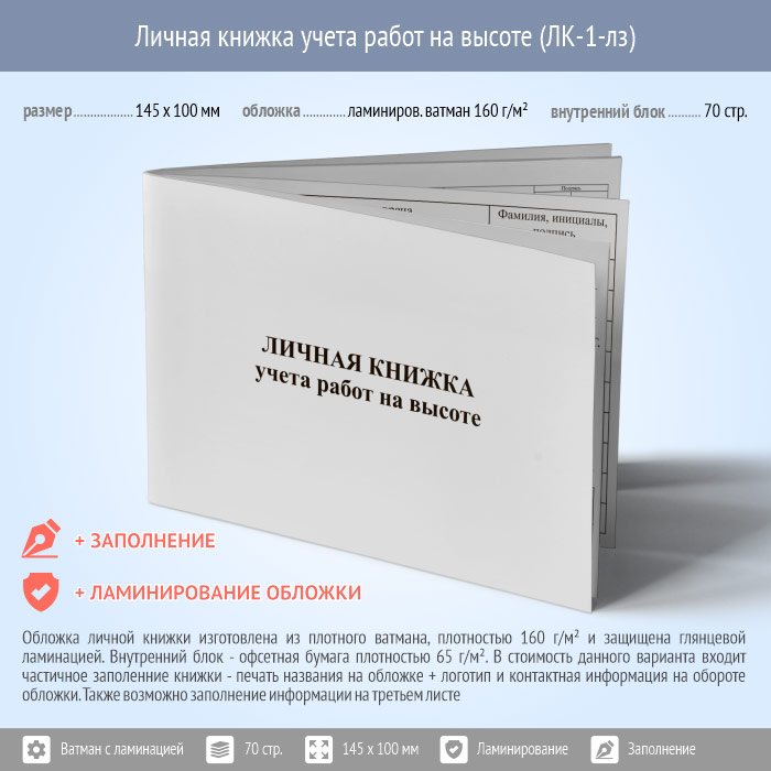 Личная книжка учета работ на высоте (с ламинированием обложки и заполнением, ЛК-1-лз) в Ижевске купить
