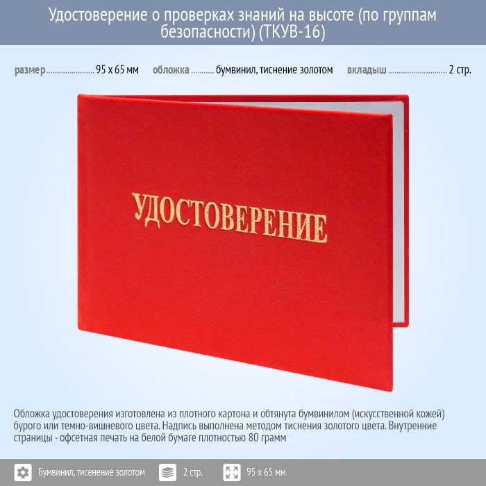 Бланк удостоверения о проверках знаний на высоте (по группам безопасности) (ТКУВ-16) в Ижевске купить