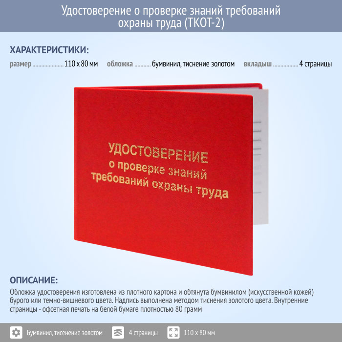 Бланк удостоверения о проверке знаний требований охраны труда (ТКОТ-2) в Ижевске купить