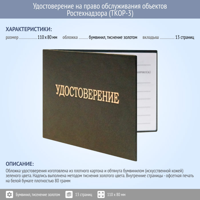 Бланк удостоверения на право обслуживания объектов Ростехнадзора (ТКОР-3) в Ижевске купить