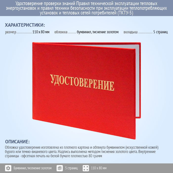 Бланк удостоверения проверки знаний Правил технической эксплуатации тепловых энергоустановок и правил техники безопасности при эксплуатации теплопотребляющих установок и тепловых сетей потребителей (ТКТУ-5) в Ижевске купить