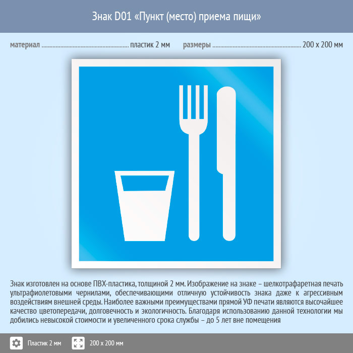 Знак D01 «Пункт (место) приема пищи» (пластик, 200х200 мм) в Ижевске купить