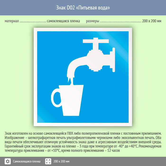 Знак D02 «Питьевая вода» (пленка, 200х200 мм) в Ижевске купить