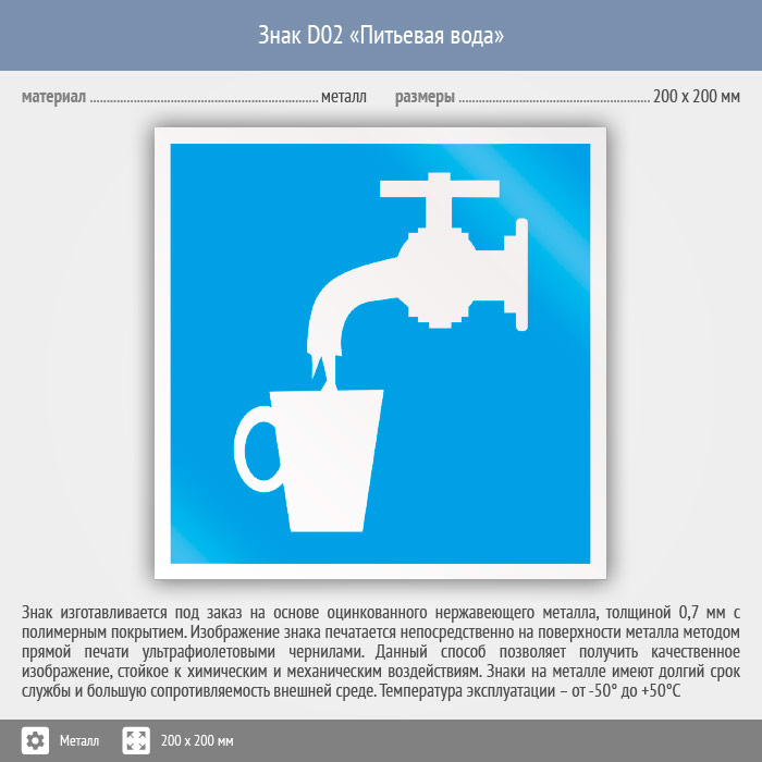 Знак D02 «Питьевая вода» (металл, 200х200 мм) в Ижевске купить