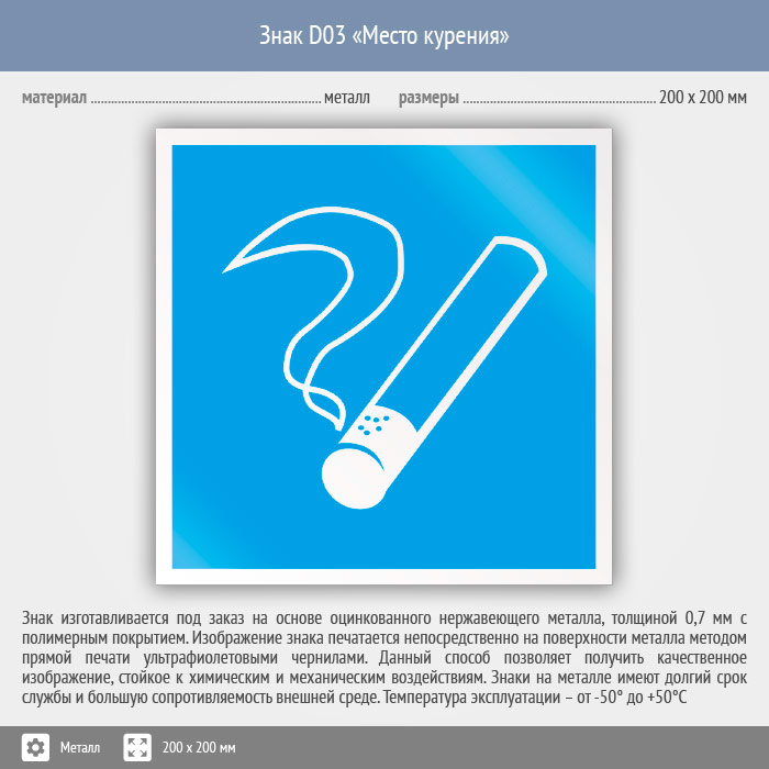 Знак D03 «Место курения» (металл, 200х200 мм) в Ижевске купить